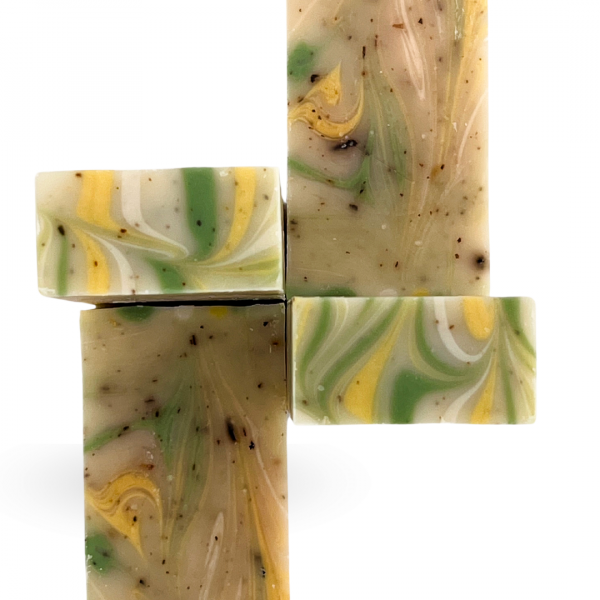 Sodium Olivate, Sodium Cocoate, Glycerin, Sodium Sunflowerseedate, Sodium Castorate, Sodium Cocoa Butterate, Sodium Shea Butterate, Prunus Armeniaca Kernel Oil, Aqua, Citral*, Cedrus Atlantica Bark Oil, Cymbopogon Citratus Leaf Oil, Litsea Cubeba Fruit Oil, Limonene*, Citrus Aurantifolia Oil, Citrus Grandis Peel Oil, Pogostemon Cablin Leaf Oil, Rosmarinus Officinalis Leaf Oil, Mentha Piperita Leaf, Camellia Sinensis Leaf Powder, Curcuma Longa Root Powder, Illite, Kaolin, Geraniol*, Helianthus Annuus Seed Oil, Linalool*, Citronellol*, Dunaliella Salina Extract (*composants naturellement présents dans les huiles essentielles).