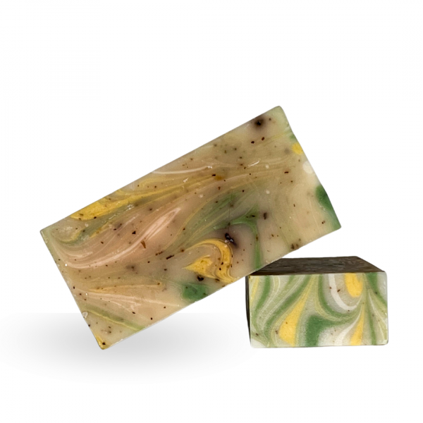 Huile d’olive, Huile de coco, Glycérine, Huile de tournesol, Huile de ricin, Beurre de cacao, Beurre de karité, Huile d’abricot, Eau, Citral*, Huile essentielle de cèdre de l’Atlas, Huile essentielle de citronnelle, Huile essentielle de litsée citronnée, Limonène*, Huile essentielle de citron vert, Huile essentielle de pamplemousse, Huile essentielle de patchouli, Huile essentielle de romarin, Feuille de menthe poivrée, Poudre de thé vert, Poudre de curcuma, Illite, Kaolin, Géraniol*, Huile de tournesol, Linalol*, Citronellol*, Extrait de Dunaliella salina (*composants naturellement présents dans les huiles essentielles)