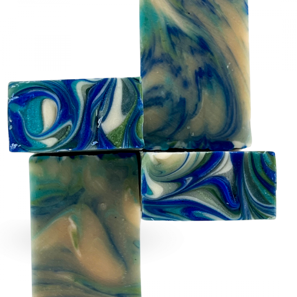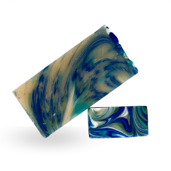 Huile d’olive, Huile de coco, Glycérine, Huile de tournesol, Huile de ricin, Beurre de cacao, Beurre de karité, Huile de chanvre, Eau, Huile essentielle de cèdre de l’Atlas, Huile essentielle de citron vert, Limonène*, Huile essentielle de litsée citronnée, Huile essentielle d’arbre à thé, Huile essentielle de menthe verte, Citral, CI 77007 (colorant 100% minéral bleu), Huile essentielle de clou de girofle, Argile verte, Kaolin, Eugénol* (*composants naturellement présents dans les huiles essentielles).